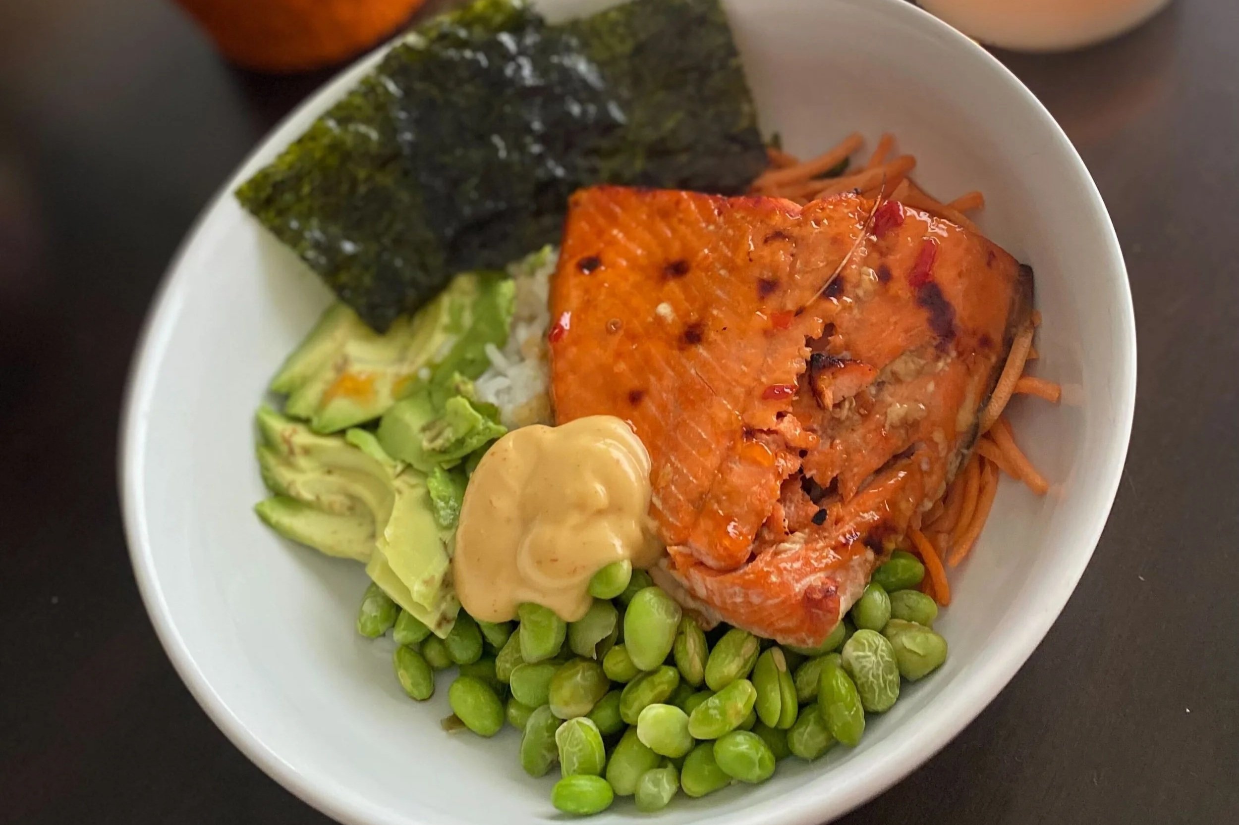 I love a good salmon and rice bowl, or poke bowl, so this is my go-to dinner when I’m craving something quick and have nothing prepped.